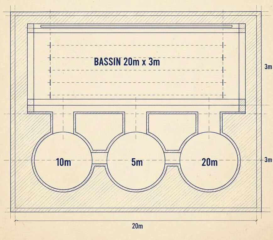 Description: Fosse moderne qui a ouvert en 2018 et qui a réouvert en 2025 suite a des travaux. Piscine magnifique, le bassin est composé d’un escalier avec des marches jusqu’à 12m, puis un tube permet de continuer jusqu’à 20m de profondeur. La réservation est pénible, il est préférable de réserver via son club. Il n’y a pas de cours dispensés directement par le centre aquatique.